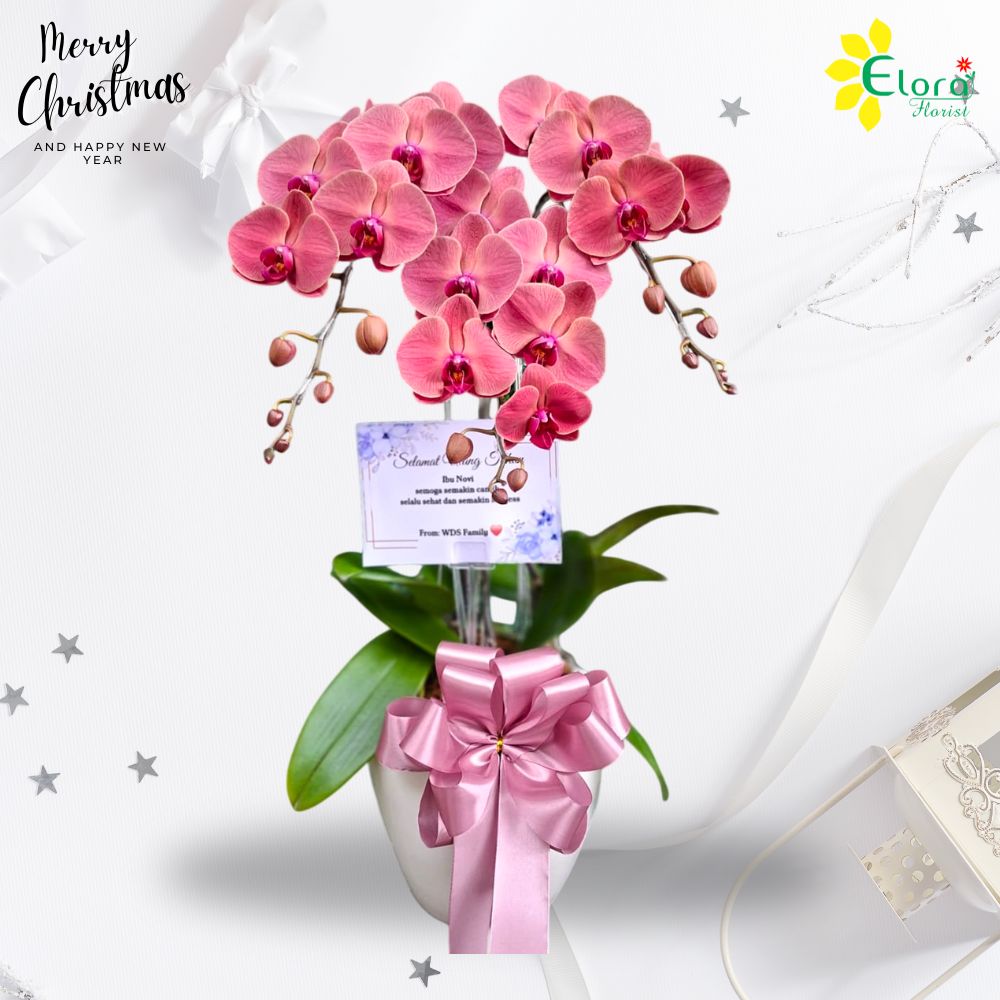 Bunga anggrek natal dengan 3 untai anggrek merah