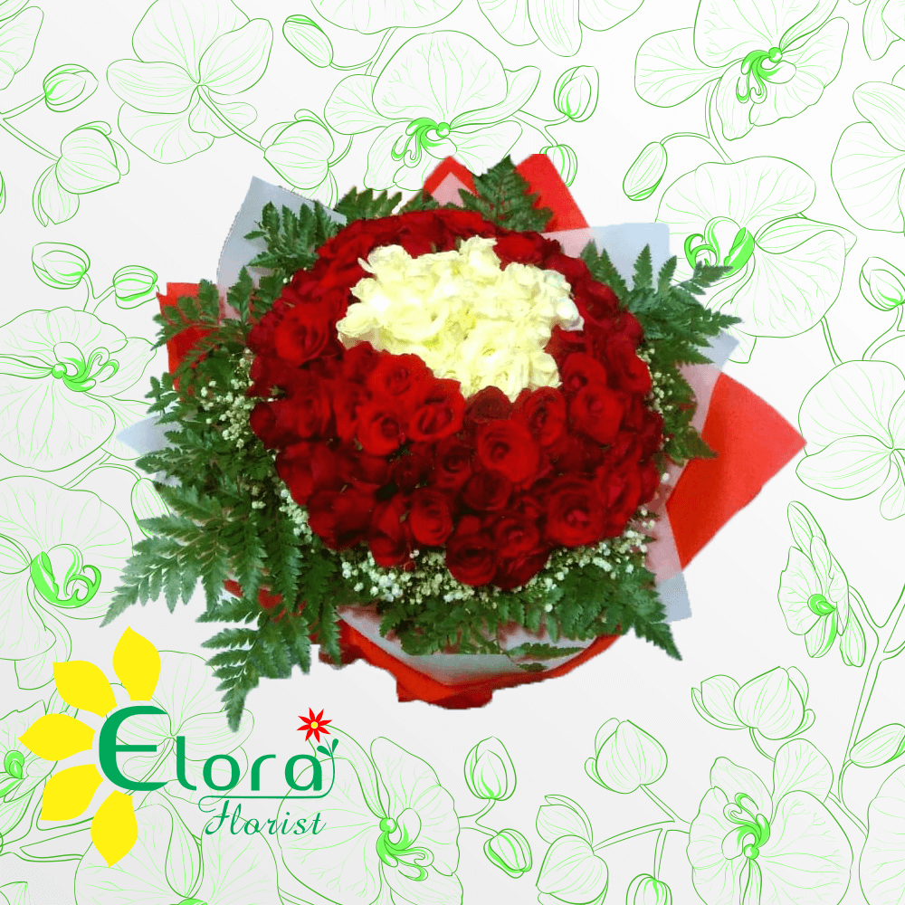 hand bouquet 100 tangkai mawar merah dan putih