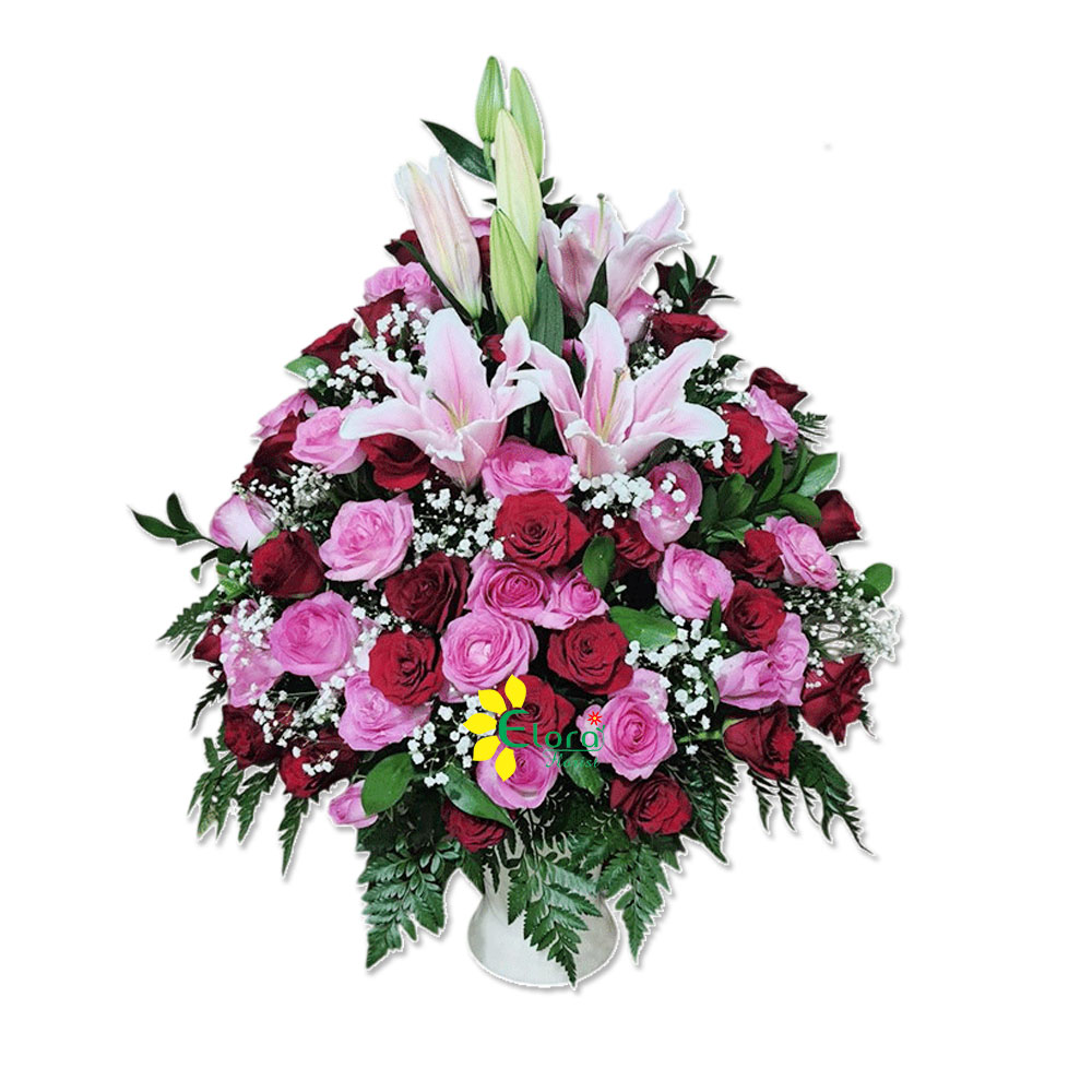 Bunga meja dengan bunga mawar dengan vas keramik