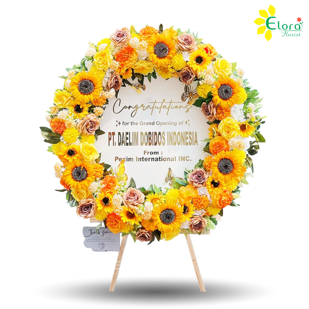 Bunga Papan Akrilik bentuk bulat warna putih ukuran diameter 70 cm