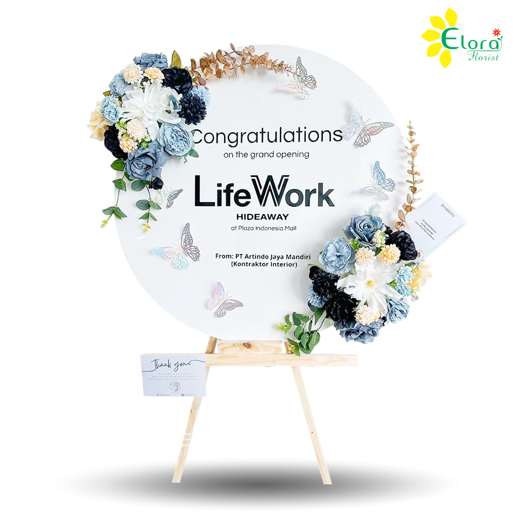 Bunga Papan Akrilik bentuk bulat warna putih ukuran diameter 70 cm