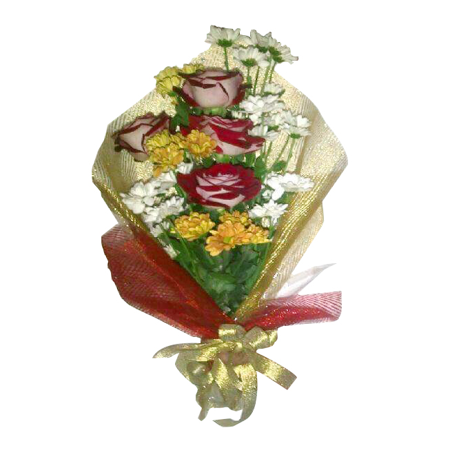 Aster putih, mawar merah dan aster kuning