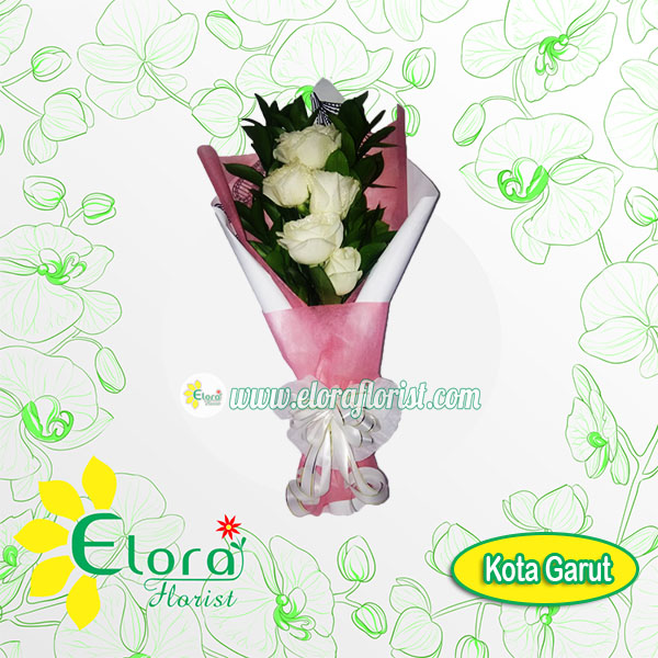 Hand Bouquet Mawar putih 5 tangkai sangat cocok untuk Wisuda, pernikahan, dan valentine