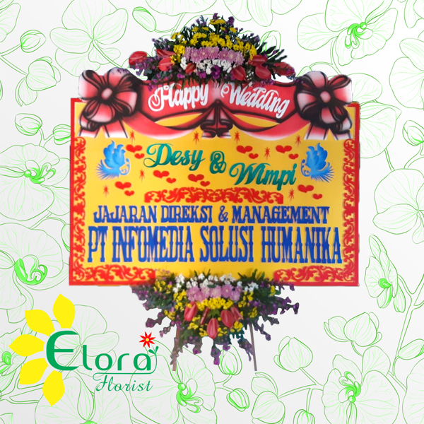 bunga papan happy wedding di kediri ukuran 1.5 x 2m 2 titik bunga