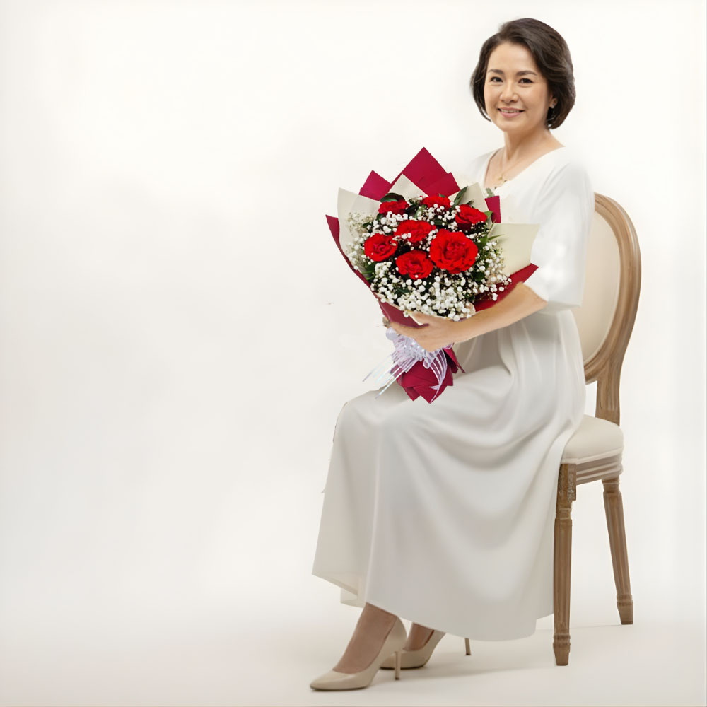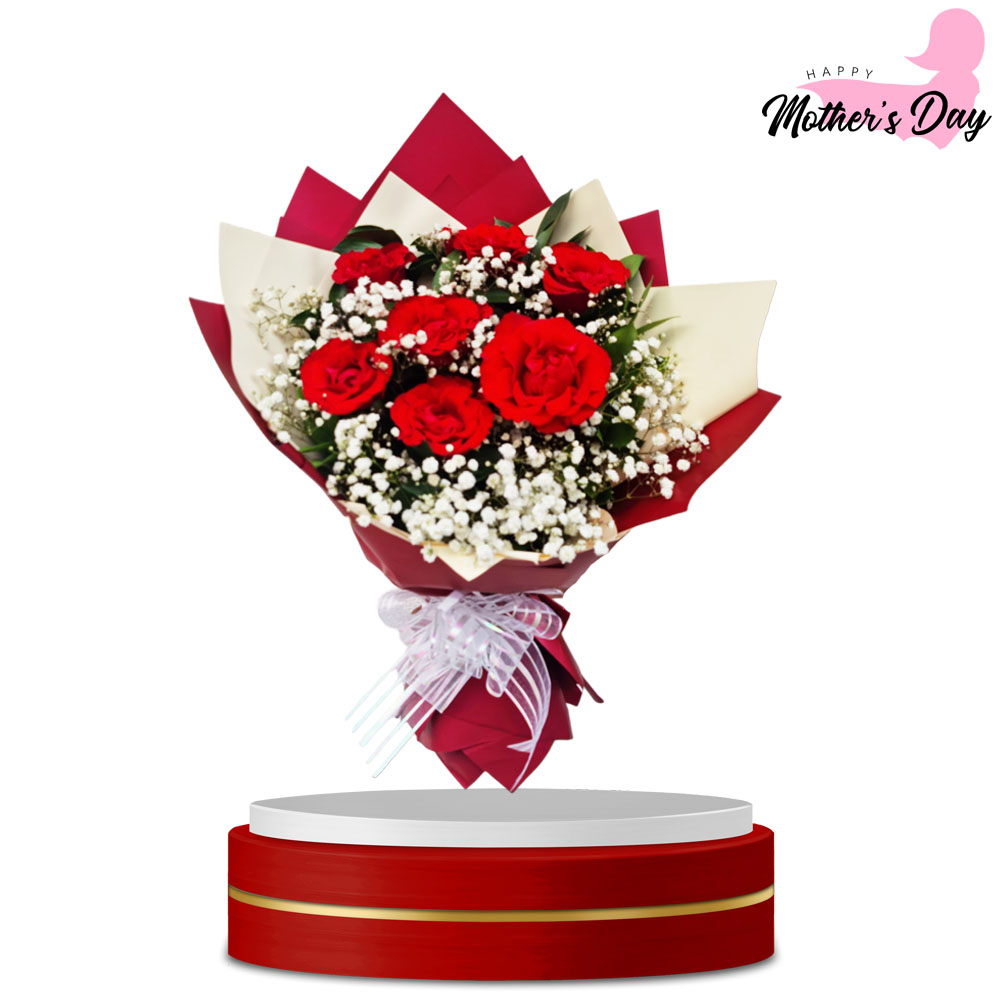 7 Tangkai Mawar Merah & Babybreath
