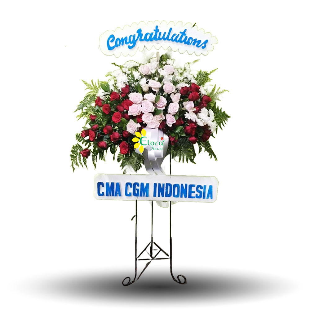Standing Flowers Congratulations cocok untuk acara peresmian dan dapat disimpan di dalam ruangan