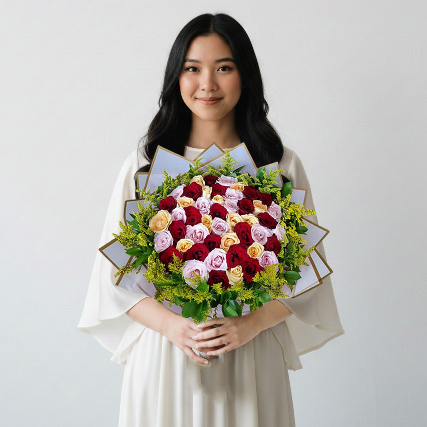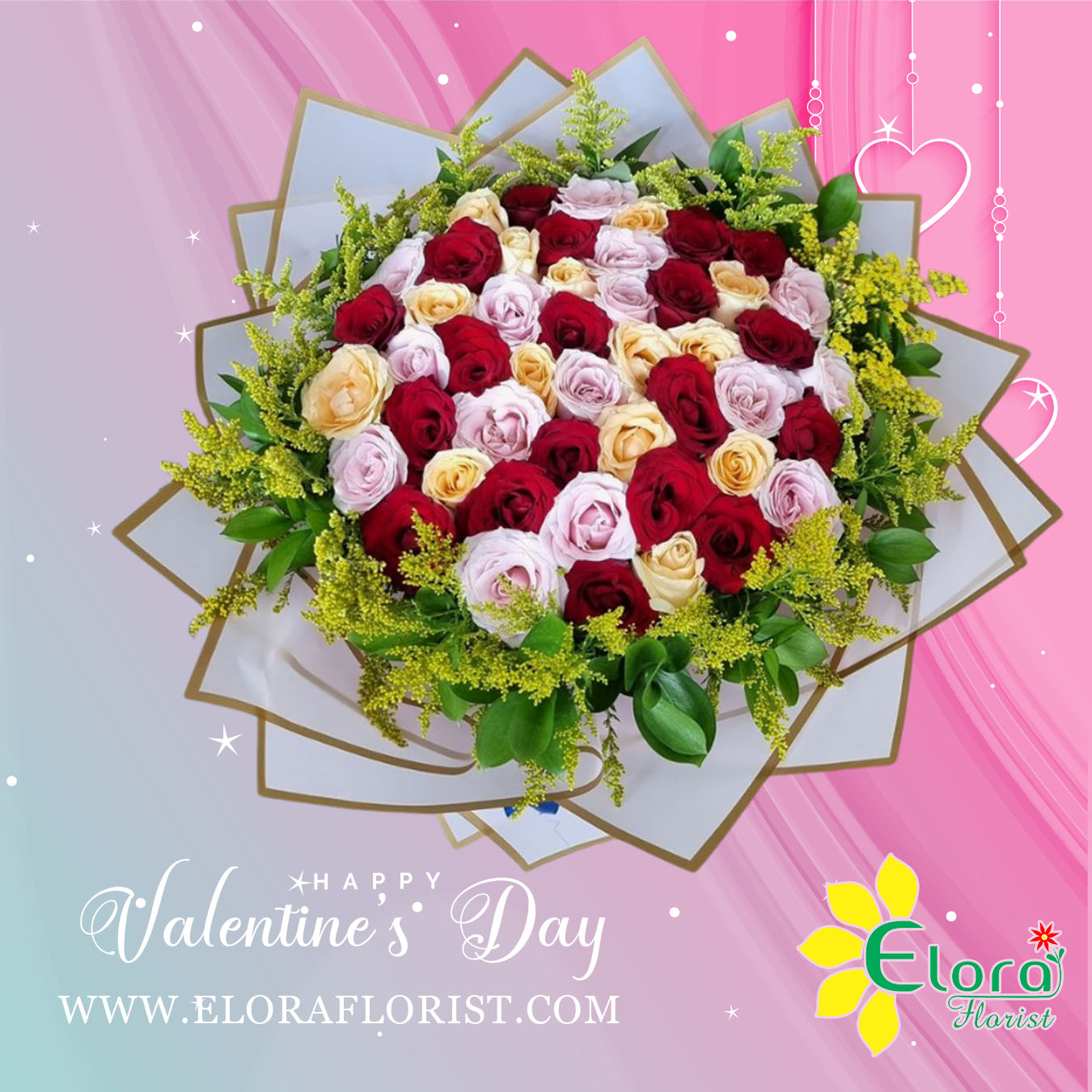 Handbouquet 50 tangkai mawar mix Salem,peach, merah.