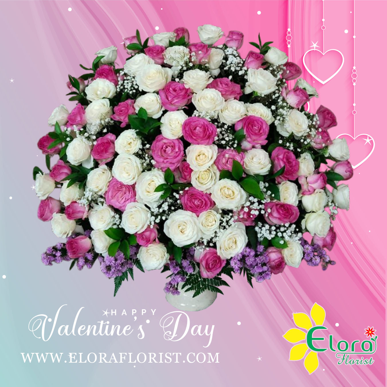 Bunga Meja 80 tangkai mawar mix pink & putih